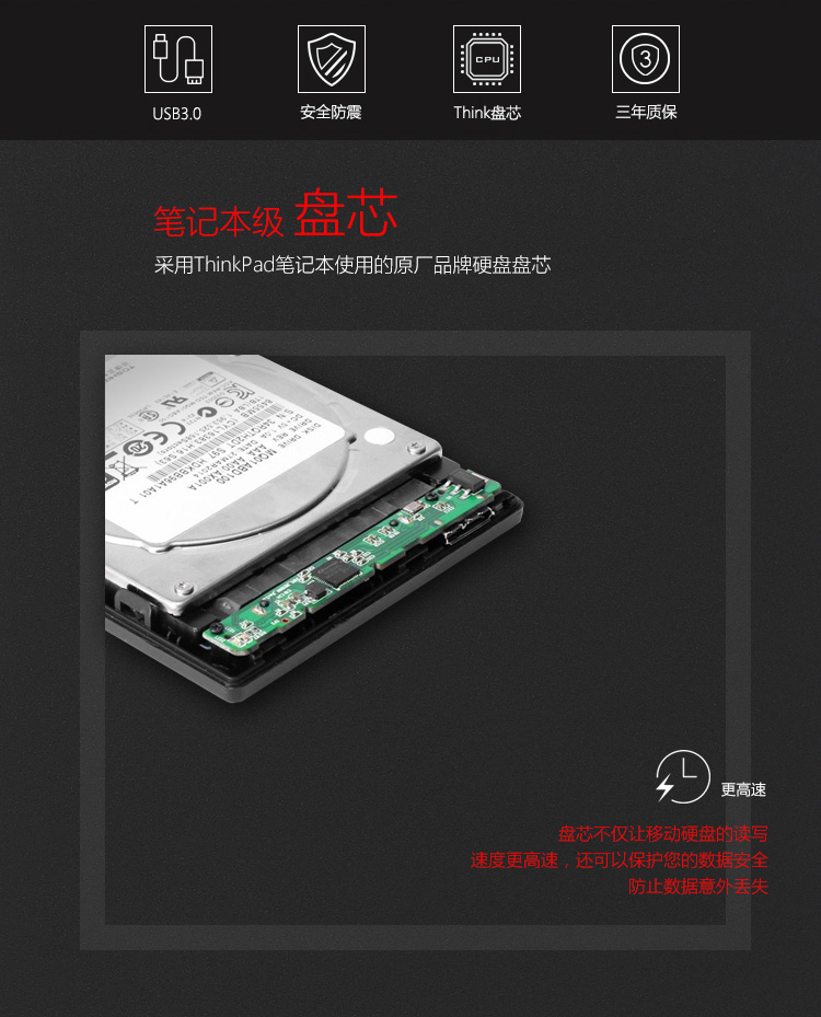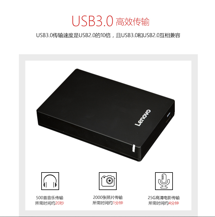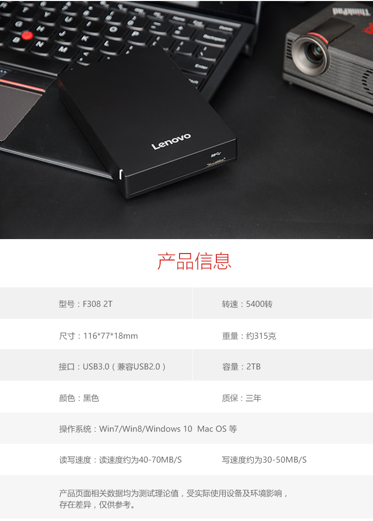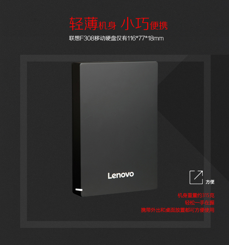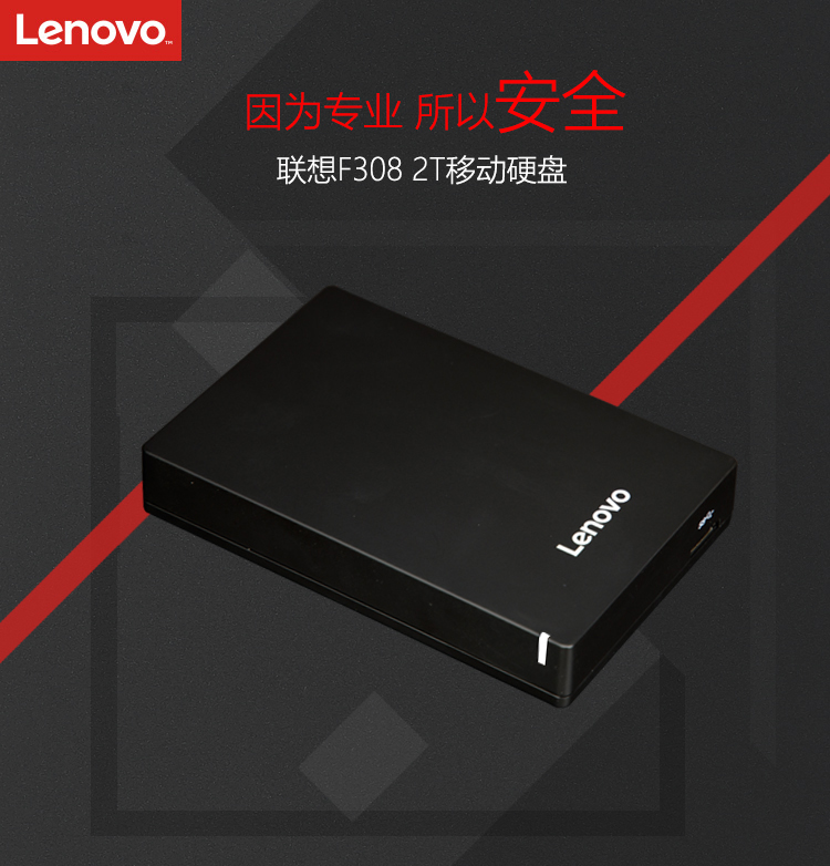 联想(Lenovo) F308 2TB USB3.0 移动硬盘2.5英寸 黑色 便携耐用 高速传输 个人云外接硬盘