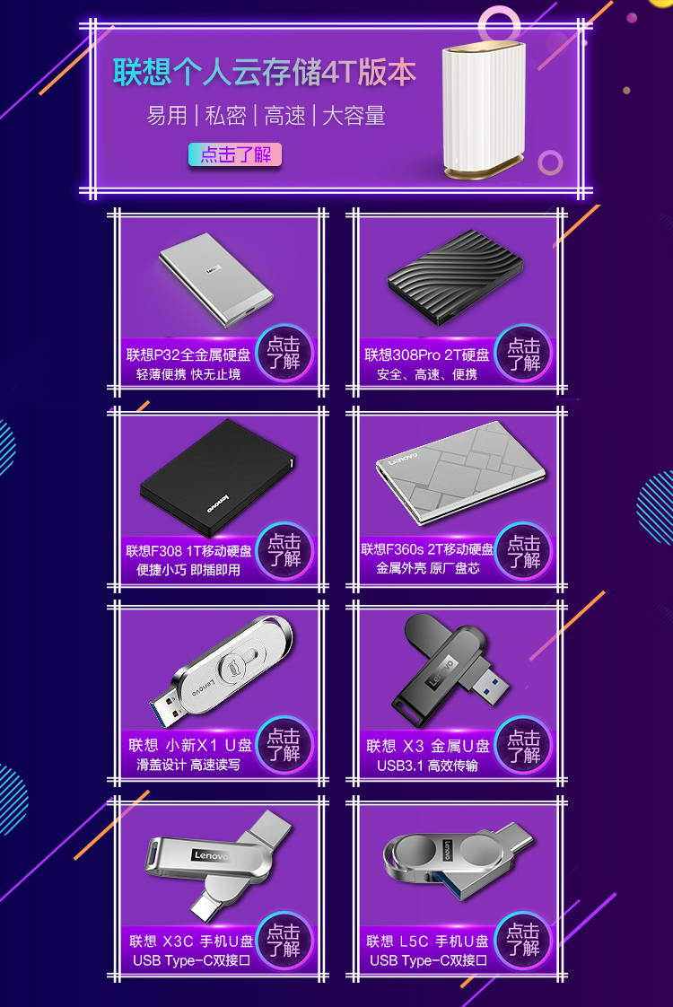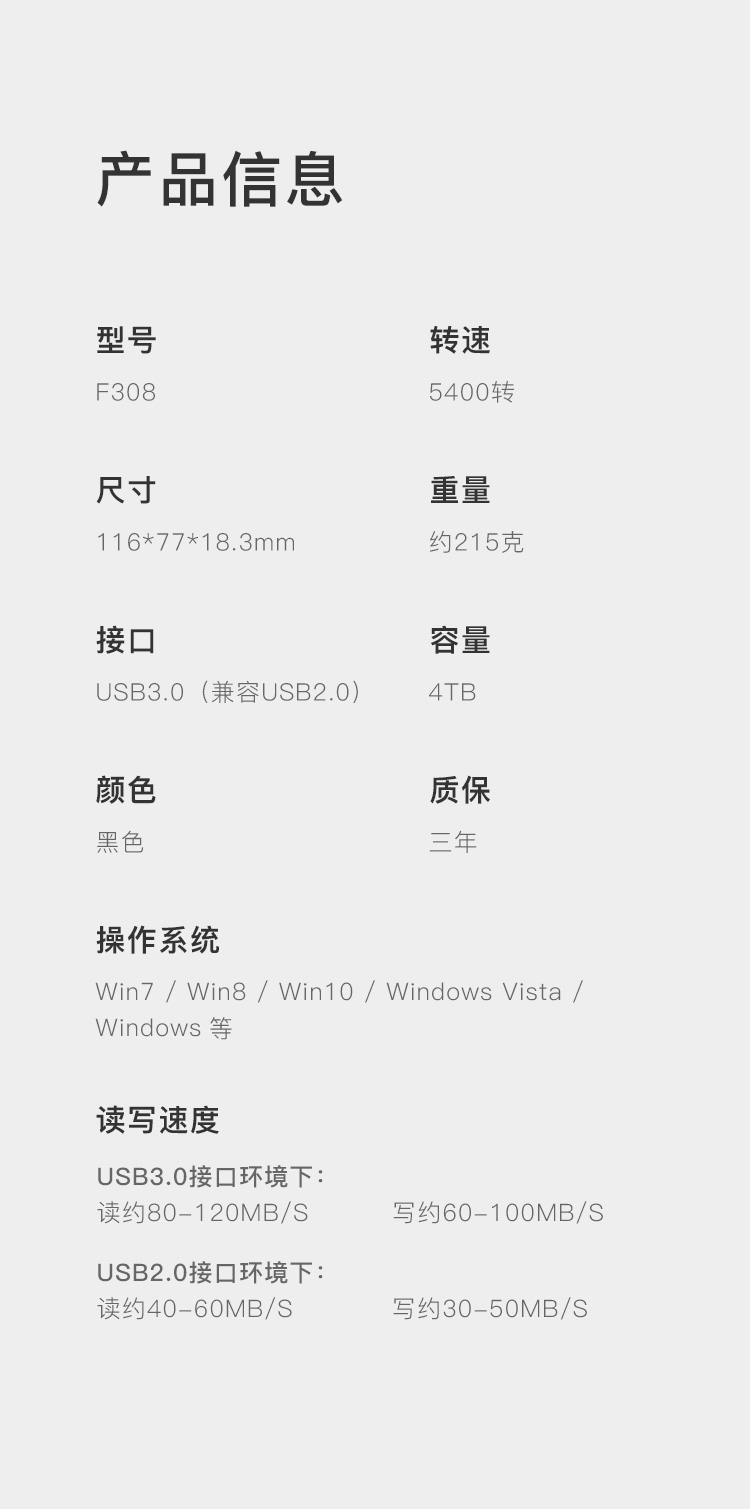 联想(Lenovo) F308 4TB USB3.0 移动硬盘 F308 2.5英寸 黑色 高速传输个 个人云外接硬盘