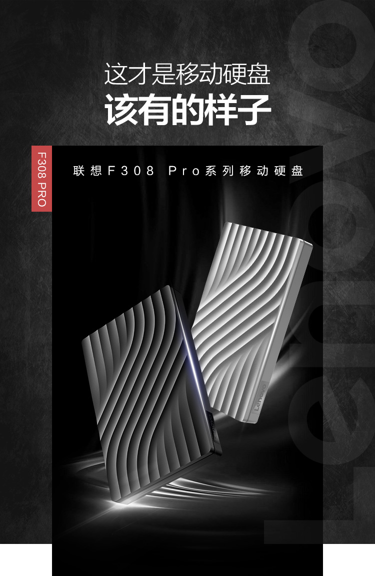 联想(Lenovo) F308 Pro 1TB USB3.0 移动硬盘2.5英寸 暮辰黑 时尚超薄轻松备份 高速传输