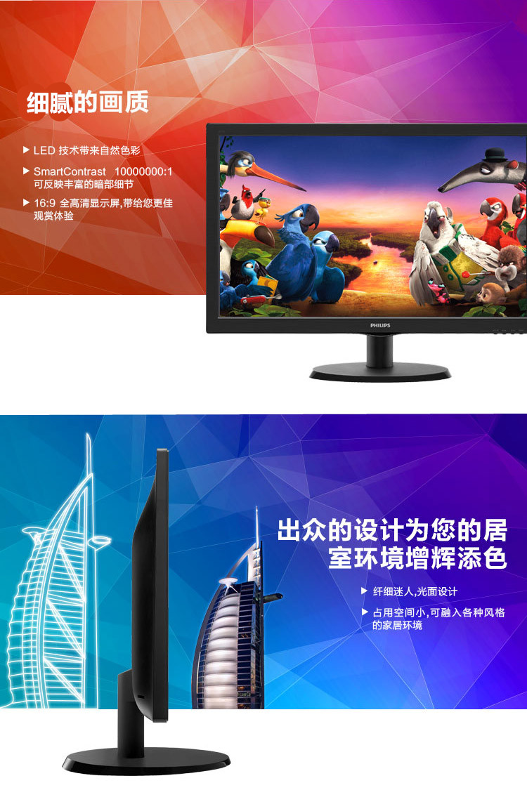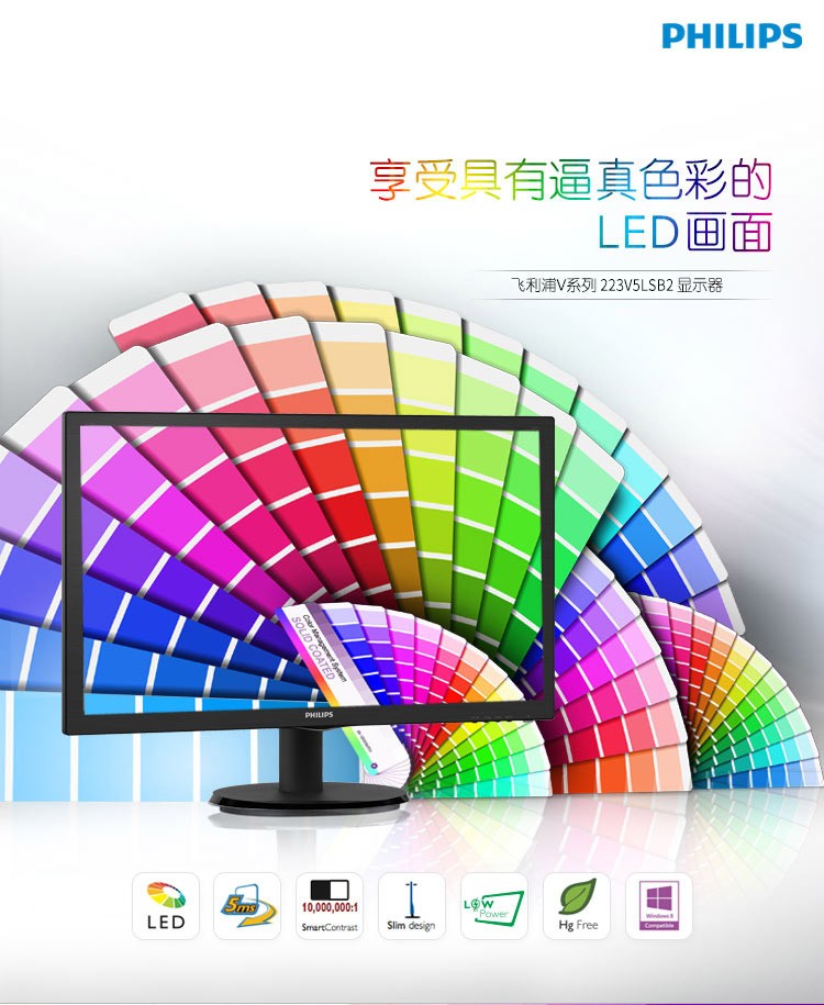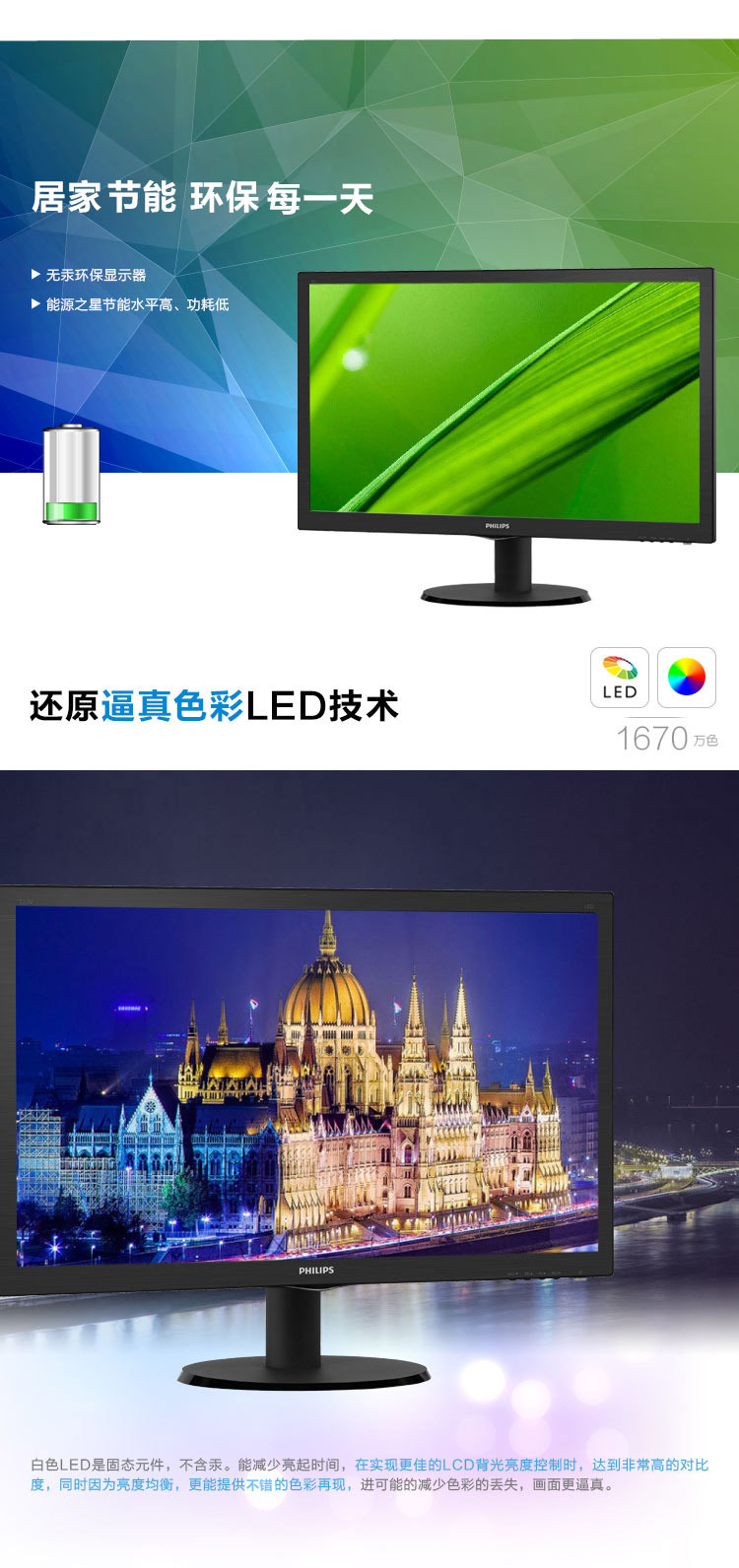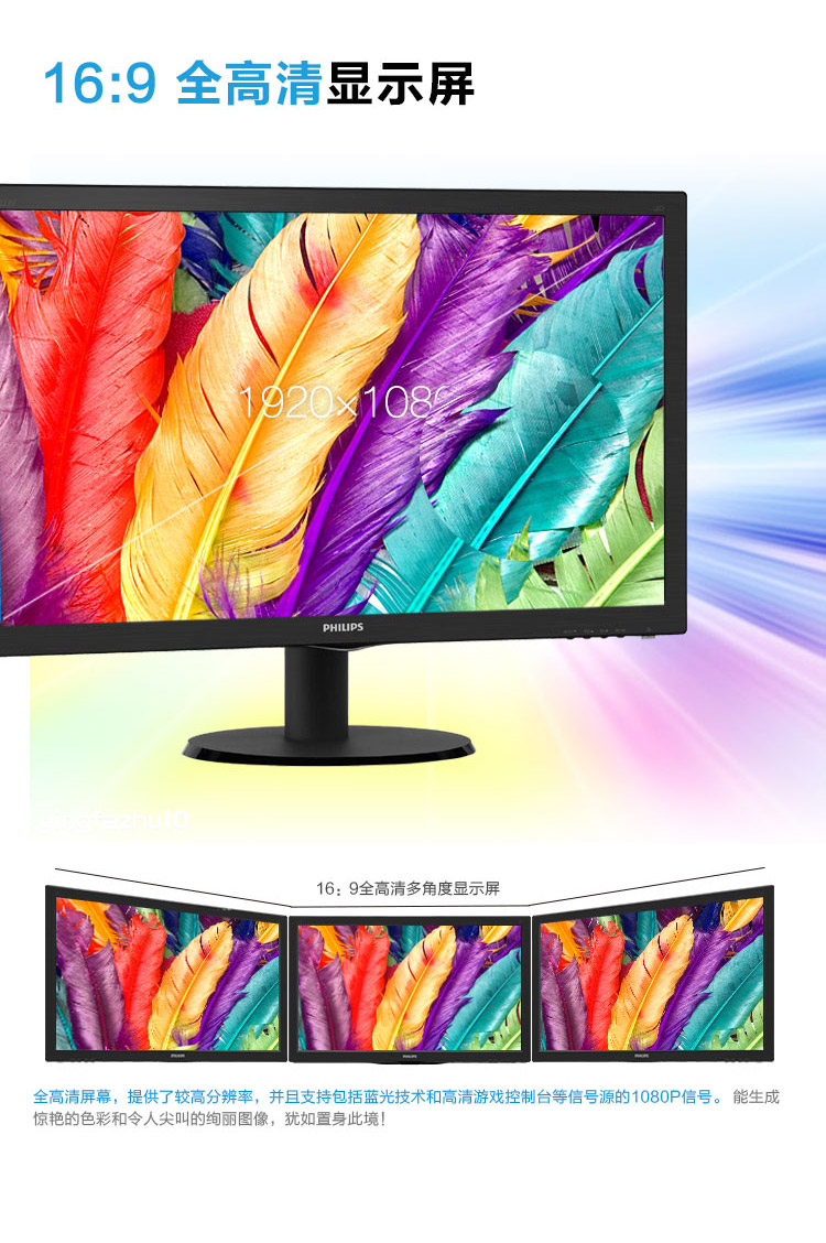 飞利浦(PHILIPS) 223V5LSB2 显示屏 21.5英寸 LED宽屏液晶显示器 黑色