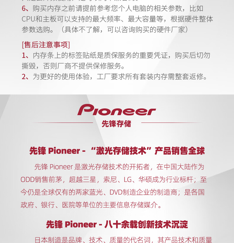 先锋(Pioneer) 4GB DDR4 2666 台式机内存条 冰锋系列
