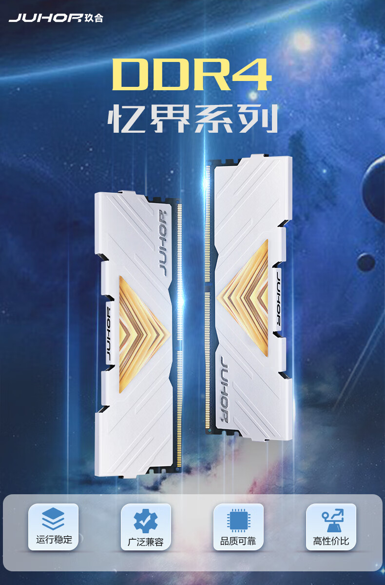 玖合(JUHOR) 16GB(8Gx2)套装 DDR4 3200 台式机内存条