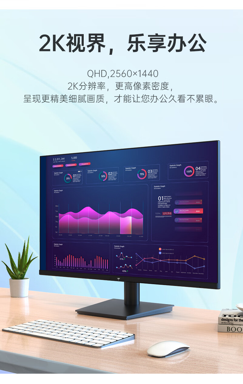 KTC 27英寸2K 100Hz IPS高清屏 爱眼 低蓝光不闪屏