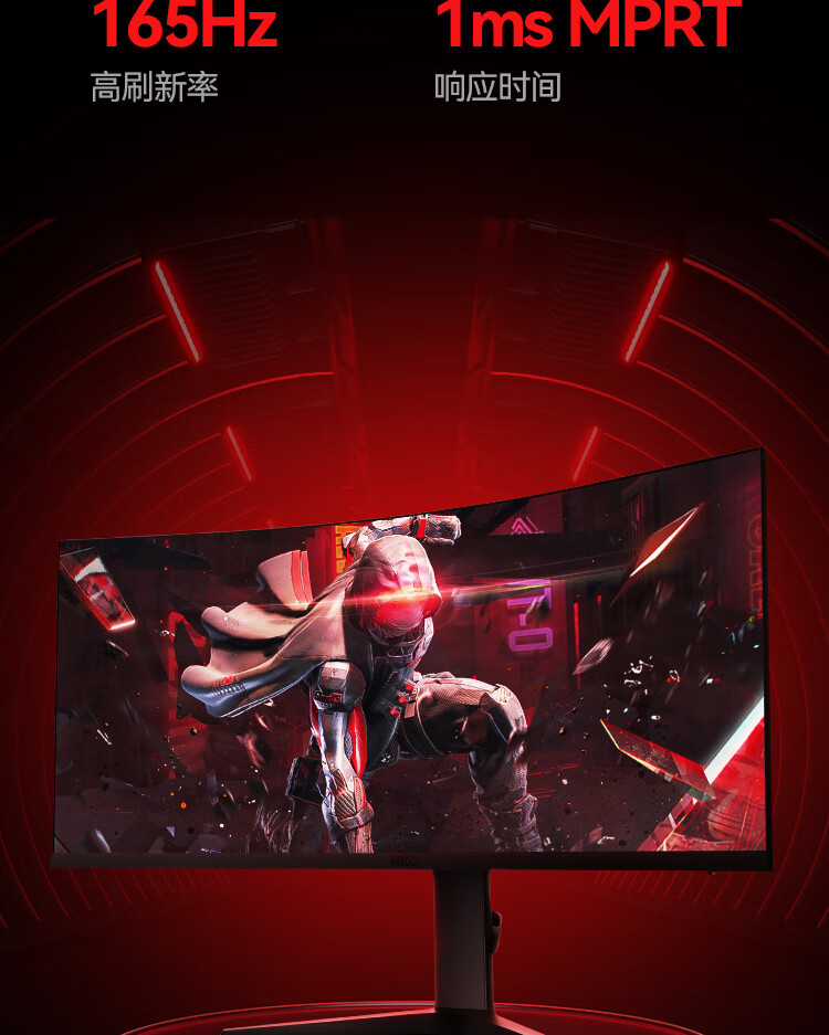 HKC 34英寸21:9带鱼屏 WQHD 165Hz 1ms响应